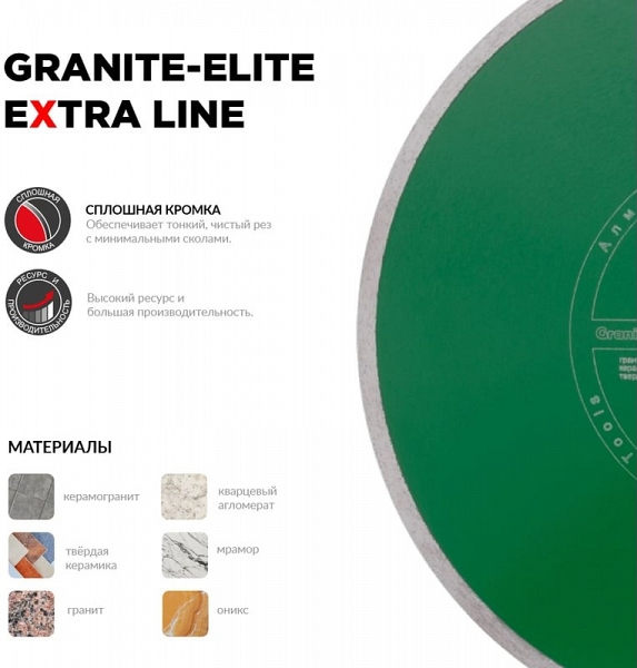 Преимущества алмазного отрезного круга Diam Extra Line 1A1R Корона Granite-Elite 400 мм:
