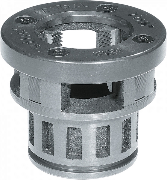 Быстросменная резьбонарезная головка Roller Central R 1 1/4" (Роллер Централ Р 1 1/4") предназначена для нарезки правой трубной конической резьбы R, согласно ISO 7-1, EN 10226 (DIN 2999, BSPT) на стальных трубах Ø 1 1/4" с применением ручных и электрических резьбонарезных трубных клуппов Централ, Кинг 1 1/4", Кинг 2".