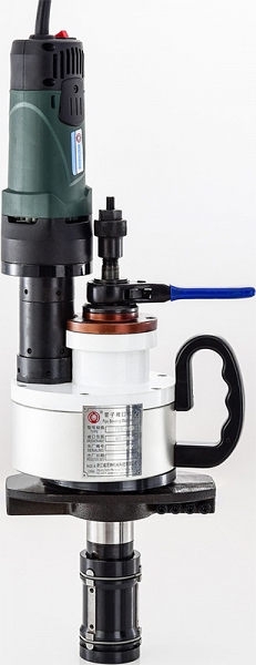 - Устанавливается на трубы и закрепляется изнутри самоцентрирующимся 3-х кулачковым зажимом