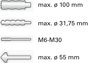 Магнитный сверлильно-резьбонарезной станок FE 100 R/L X (ФИ 100 Р/Л Х) на магнитном основании предназначен для сверления сквозных отверстий Ø 12 – 100 мм корончатыми сверлами, Ø до 31,75 мм спиральными сверлами, нарезания резьбы М6 – М30, шлифования до Ø 31,75 мм, зенкерования до Ø 50 мм.