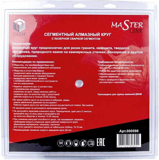 – С водяным охлаждением: предназначен для работы с водяным охлаждением, использование без подачи водяного охлаждения может привести к выходу из строя, за исключением, когда предназначен как для сухой, так и для мокрой резки - Корейские технологии: изготовлен по технологиям и под контролем ведущих производителей алмазного инструмента Южной Кореи, специально по заказу ГК Диам