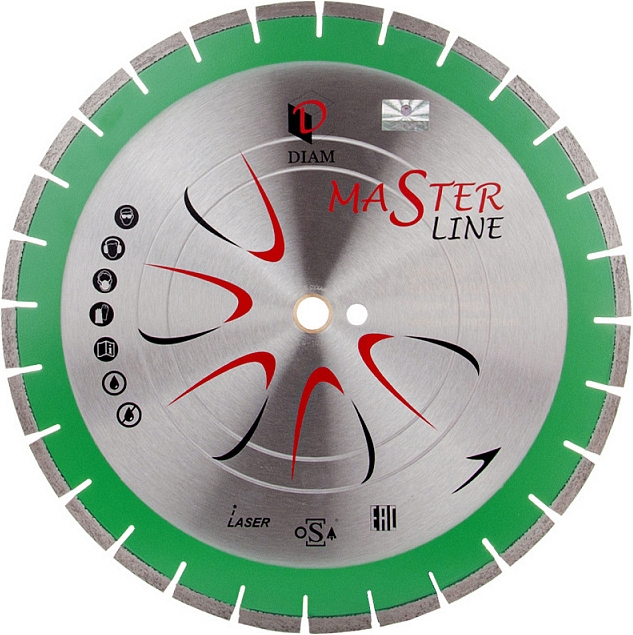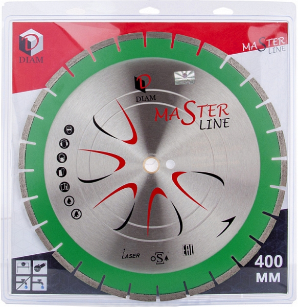 Сегментный алмазный круг Diam Master Line 1A1RSS Гранит 400 мм (Диам Мастер Лайн 1А1РСС Гранит 400 мм) – специальный сегментный алмазный отрезной диск для сухой и мокрой резки гранита, кварца, клинкера, твердых песчаников на бензорезах, электрических резчиках, камнерезных станках, стенорезных машинах, швонарезчиках и другом оборудовании, как с подачей, так и без подачи охлаждающей жидкости.