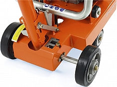 - Стабильная работа: регулируемые рукоятки обеспечивают более удобное положение оператора со стороны резки для облегчения выравнивания реза, могут быть сложены для облегчения транспортировки и выдвигаемое правое заднее колесо для повышения устойчивости