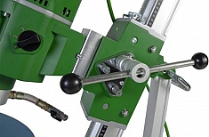 - Скорость подачи каретки: установлена регулировка скорости 1:2, чтобы сохранить больше силы; дополнительное место для крепления кривошипной рукоятки; двухскоростной редуктор подачи для снижения скорости и усилия значительно облегчает работу оператора при сверлении отверстий большого диаметра – малообслуживаемая направляющая каретки с легким ходом