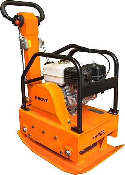 Виброплита бензиновая реверсивная Grost VH-160R (Грост ВХ-160Р) – надежная реверсивная вибрационная плита с механическим реверсом и оригинальным бензиновым двигателем Honda GX160 для работ по грунту и песку; послойного уплотнения несвязных грунтов при обратной засыпке траншей и котлованов; уплотнения разного типа грунта в основании траншей, котлованов; уплотнения песка, щебня.